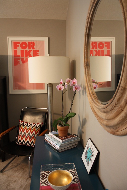 Great job incorporating those vintage pieces. Classic way to combine two design styles. That parsons table by the way is an amazing piece. I used it recently on a project and the client loves it dearly: http://www.livelaughdecorate.com/2012/04/our-contemporary-home-design-project.html